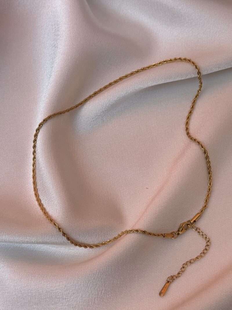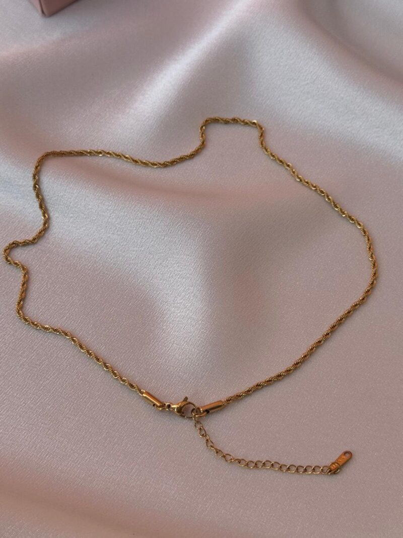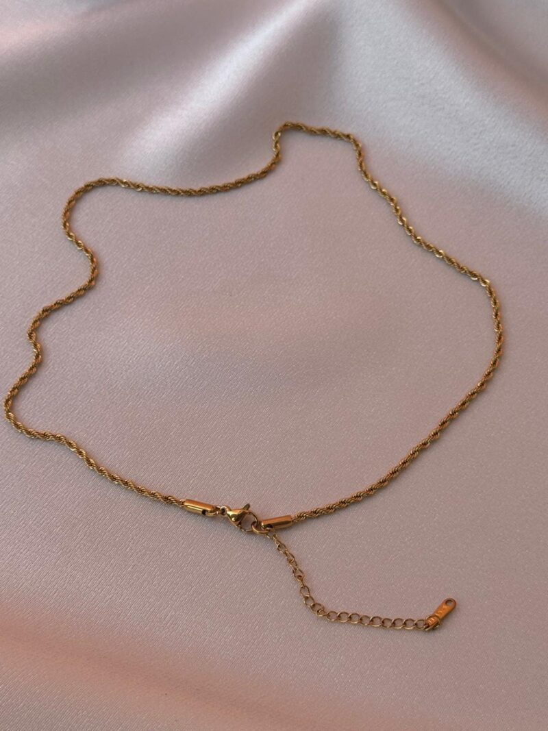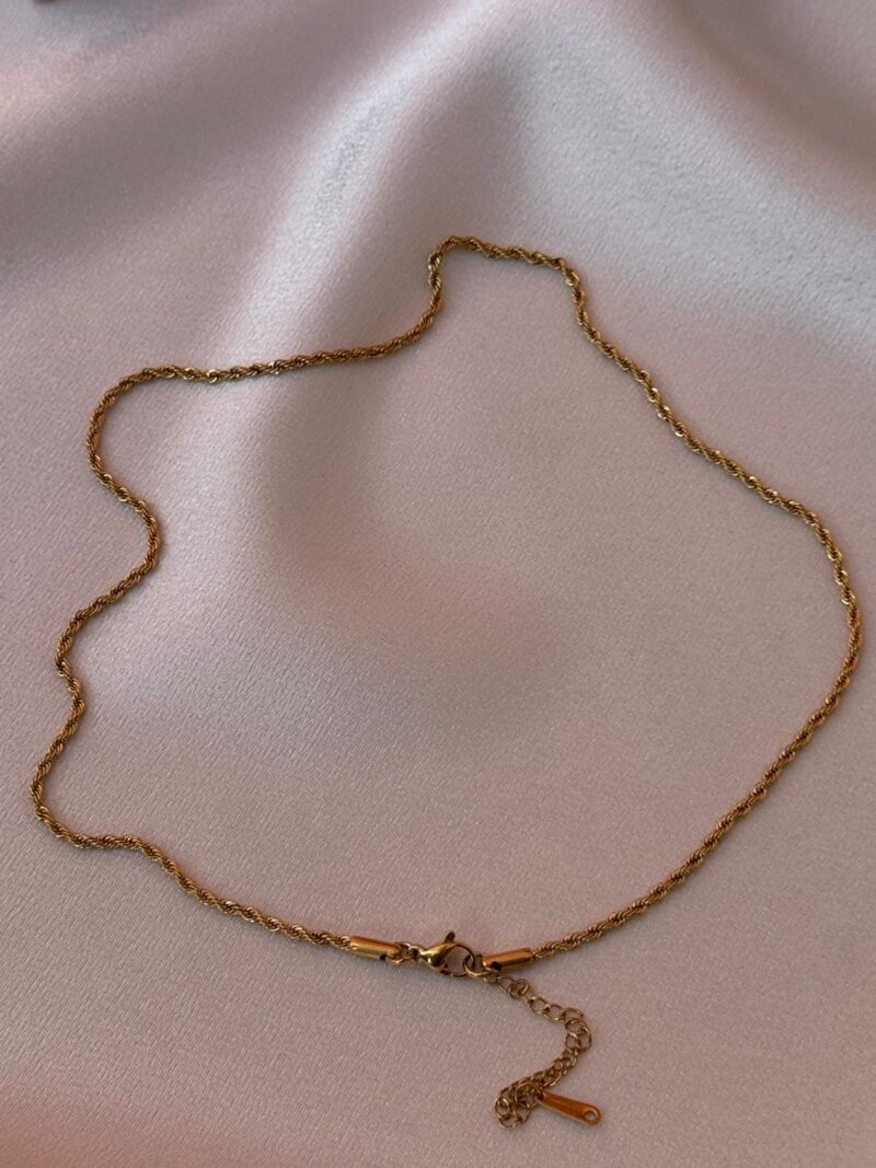 Minimal tasarımıyla her kombine uyum sağlayan, altın kaplama paslanmaz çelik burgu zincir kolye.