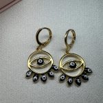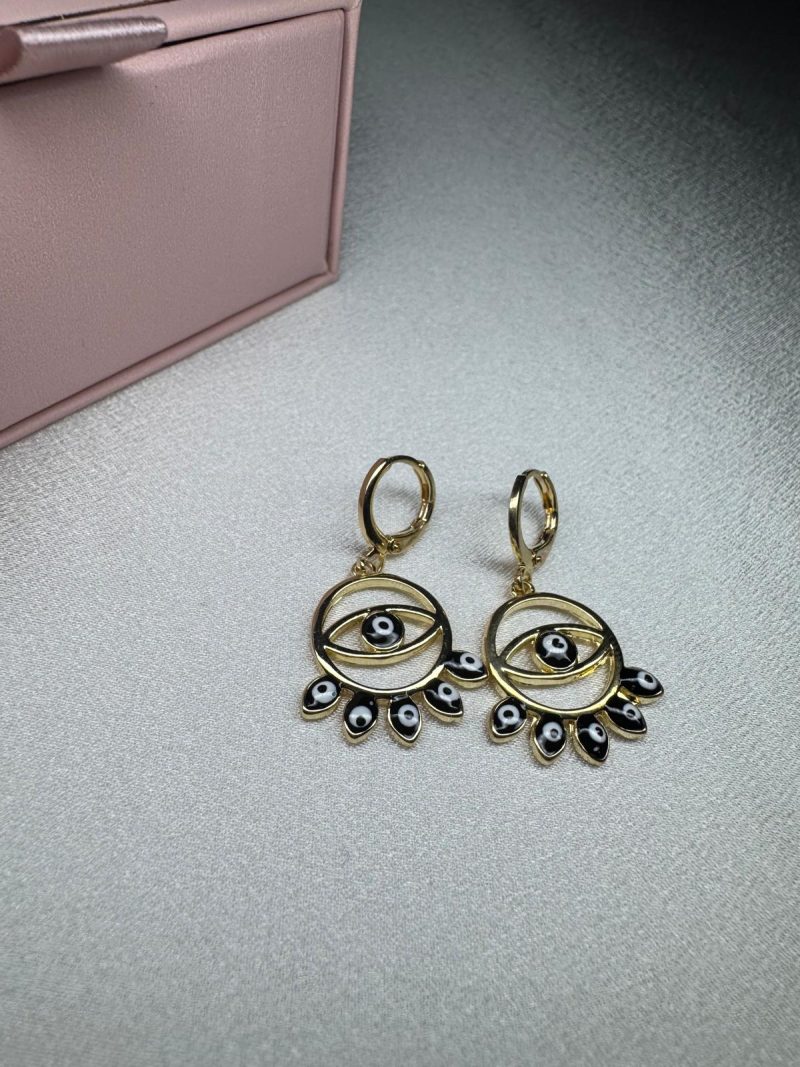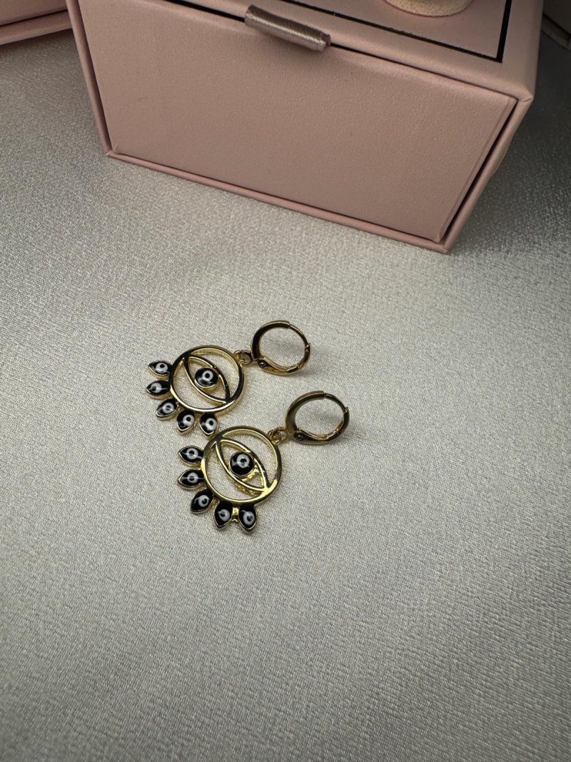 Altın Renk Nazar Göz Sallantılı Küpe – Siyah Detaylı