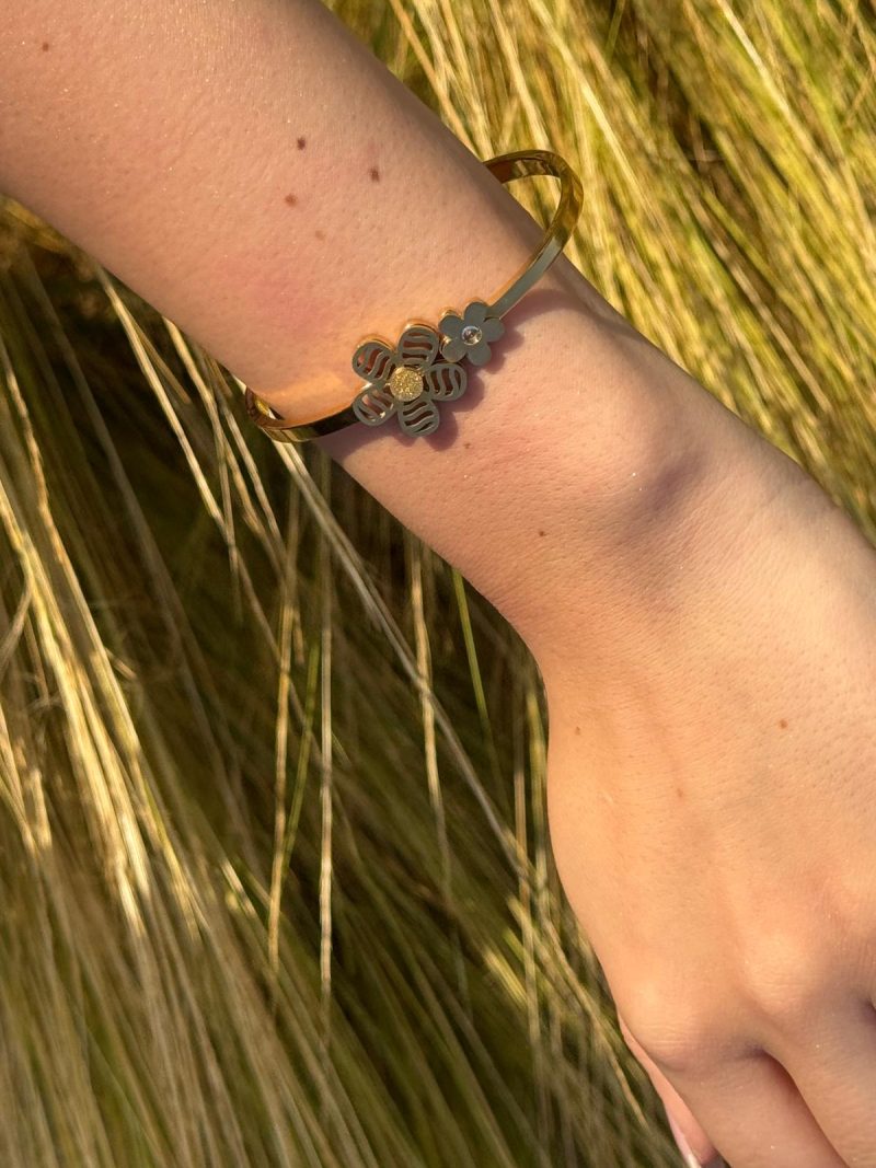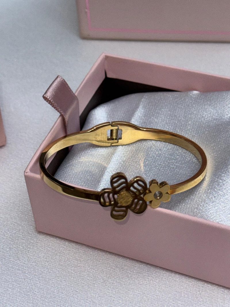 Modern ve neşeli ruhunuzu yansıtan çiçek tasarımlı gold bileklik.