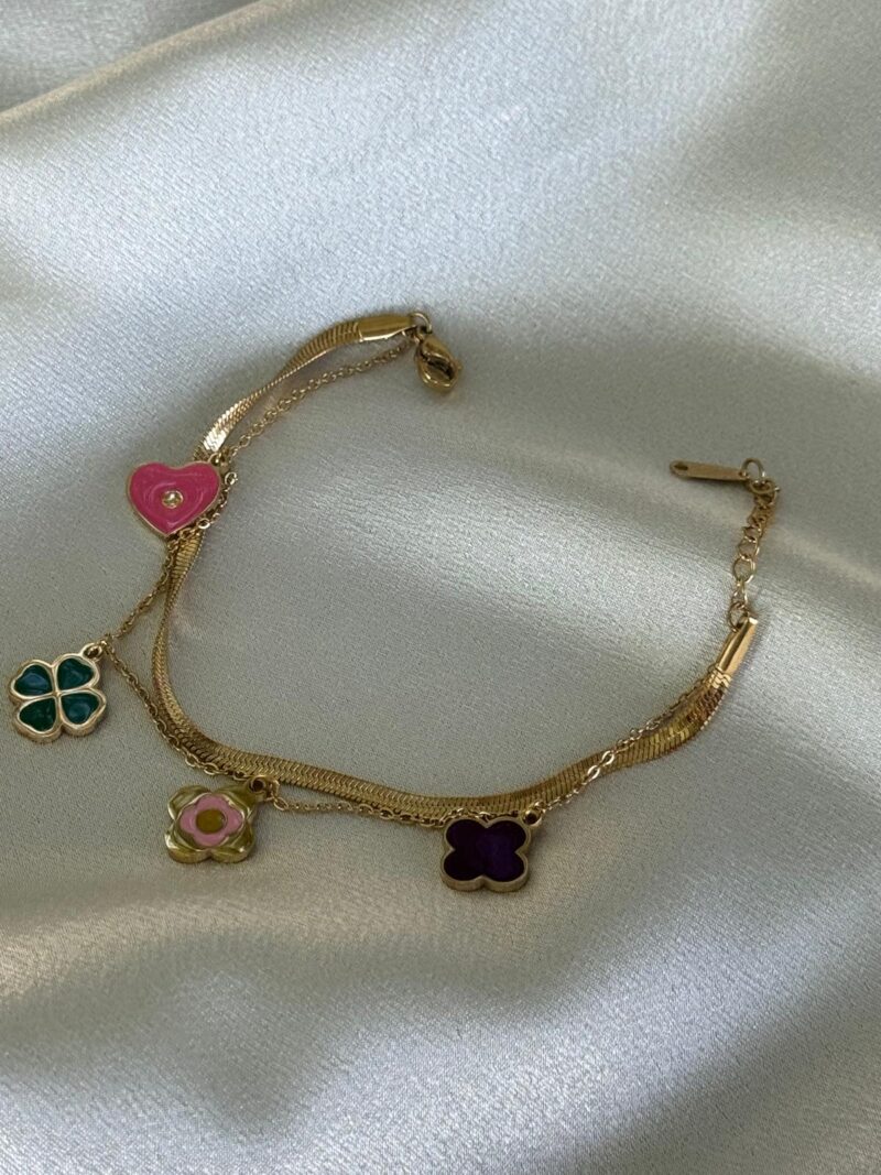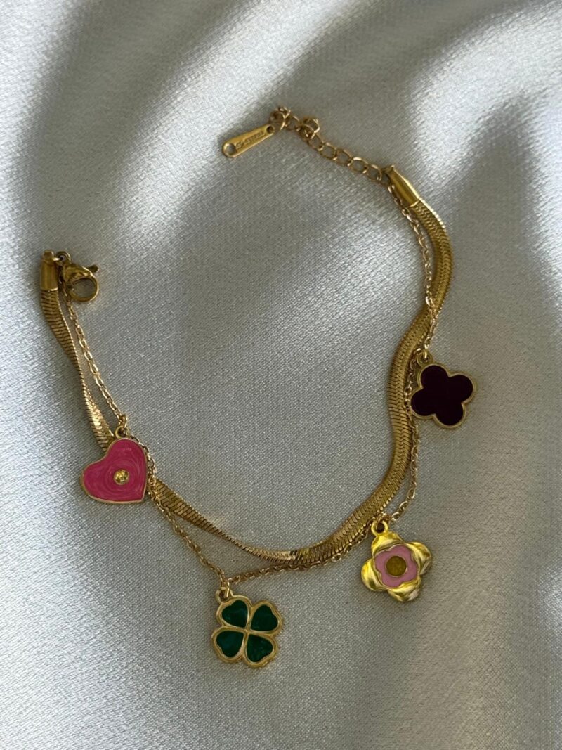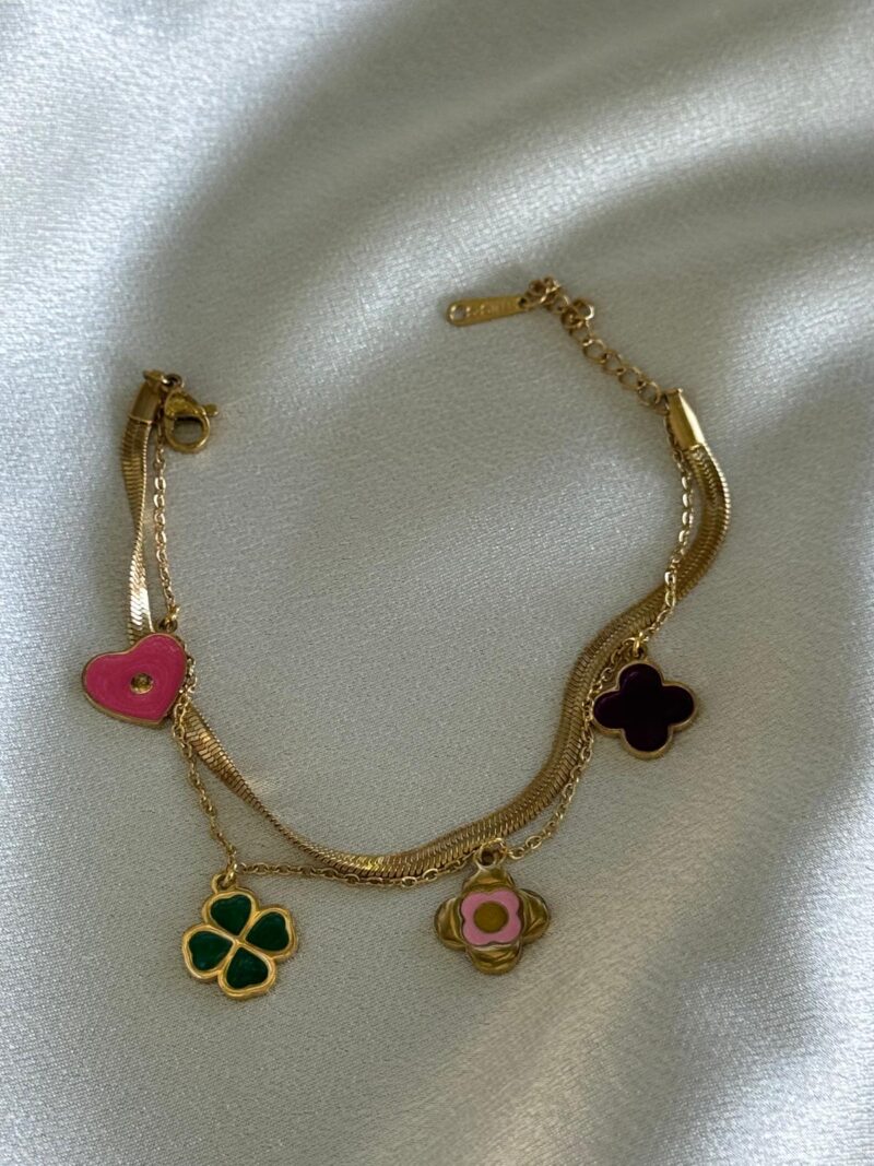 Çelik Renkli Yonca İtalyan Zincirli Bileklik