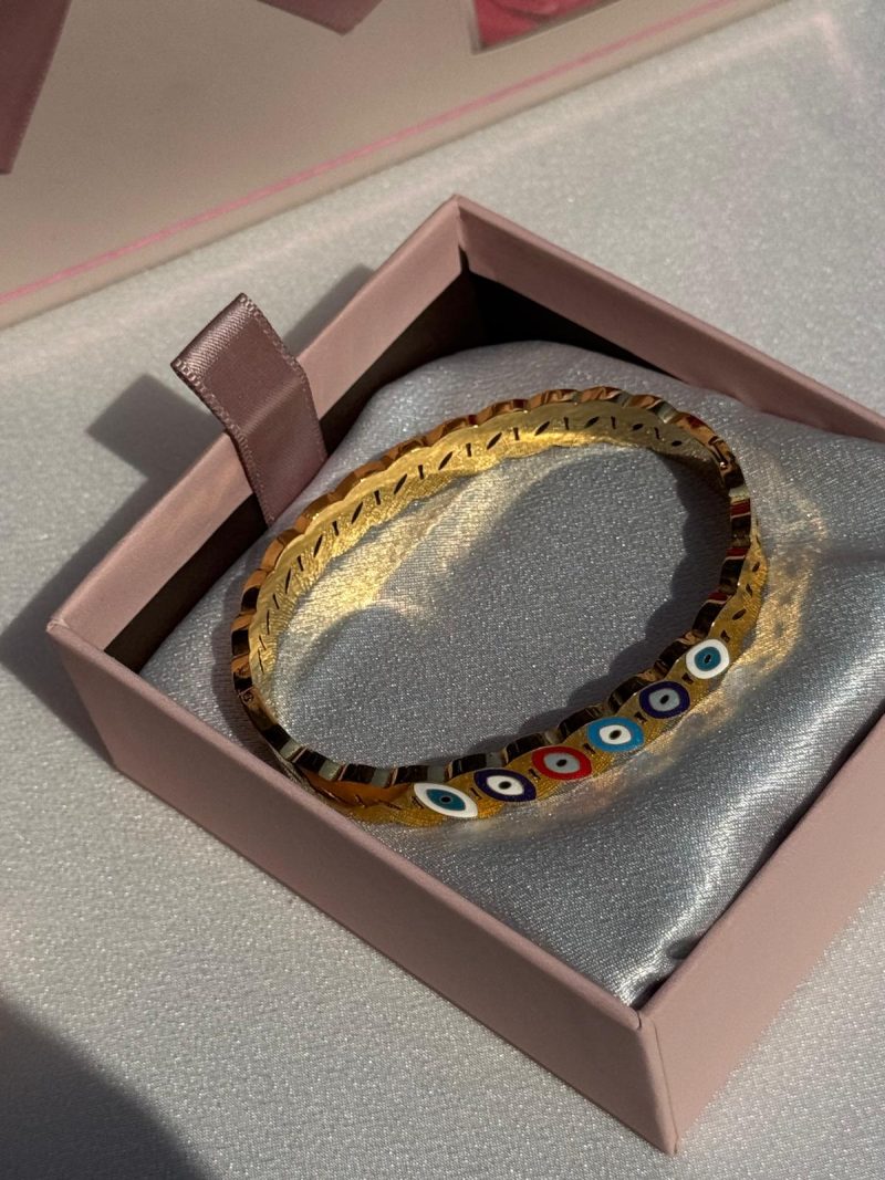 ColorGuard – Renkli Nazar Boncuklu Gold Bileklik