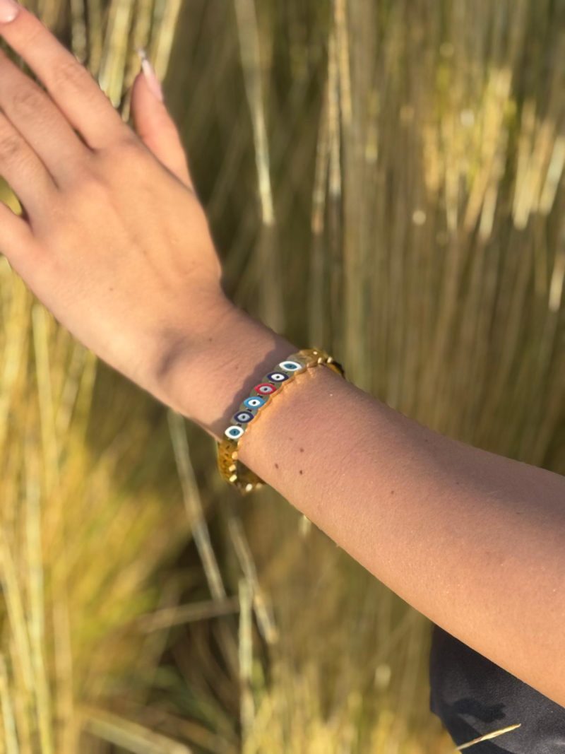 Enerjini yansıt, nazarı savuştur! Canlı renklerde nazar boncuklarıyla süslenen ColorGuard bileklik, her stilin tamamlayıcısı.