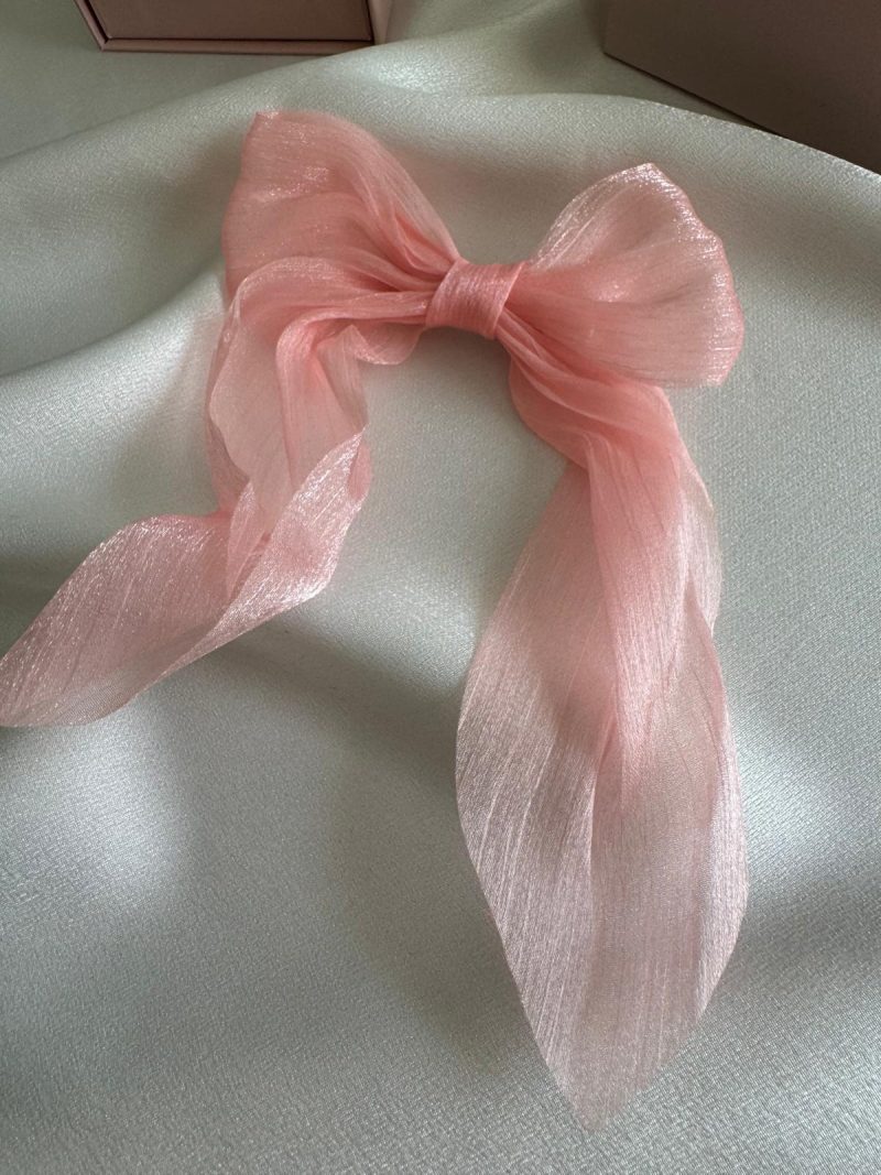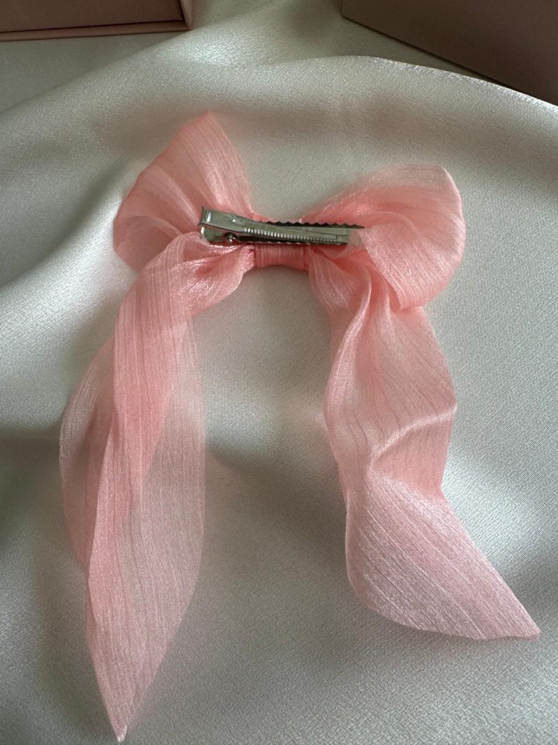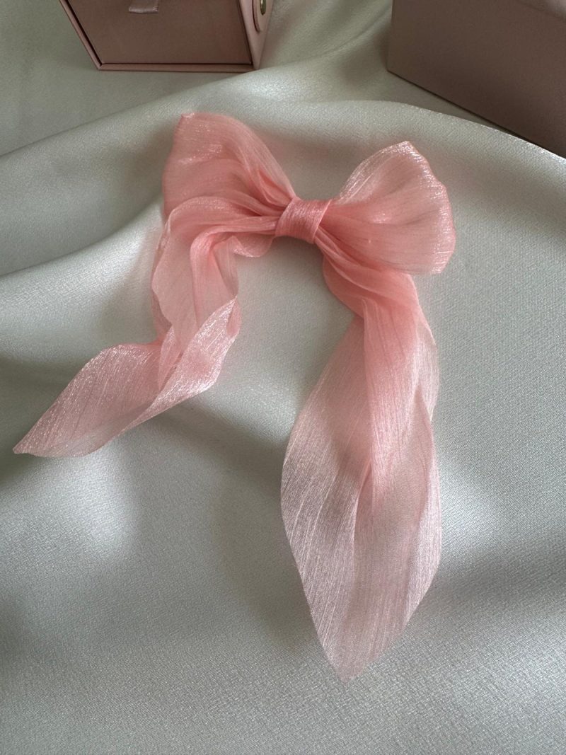 Dalgalı ve hafif transparan yapıya sahip bu açık pembe fiyonk toka; şıklığı ve sadeliği bir arada sunar. Işıltılı kumaşı sayesinde hem günlük kombinlerde hem de özel günlerde zarif bir detay olarak kullanılabilir. Özellikle pastel renk sevenler ve romantik stil tutkunları için ideal. Saça kolay tutunur ve konforlu bir kullanım sağlar.