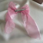 Dalgalı şeffaf kumaşı ve zarif duruşuyla bu uçuk pembe fiyonk toka, sade ama etkileyici bir görünüm sunar. Saçlarda neredeyse bir tül gibi hafif durur, tok yapısıyla kolay kolay bozulmaz. Özellikle ilkbahar-yaz sezonunda pastel renk sevenler için vazgeçilmezi olacak bu model, hem özel günlerde hem günlük kullanımda tercih edilebilir.