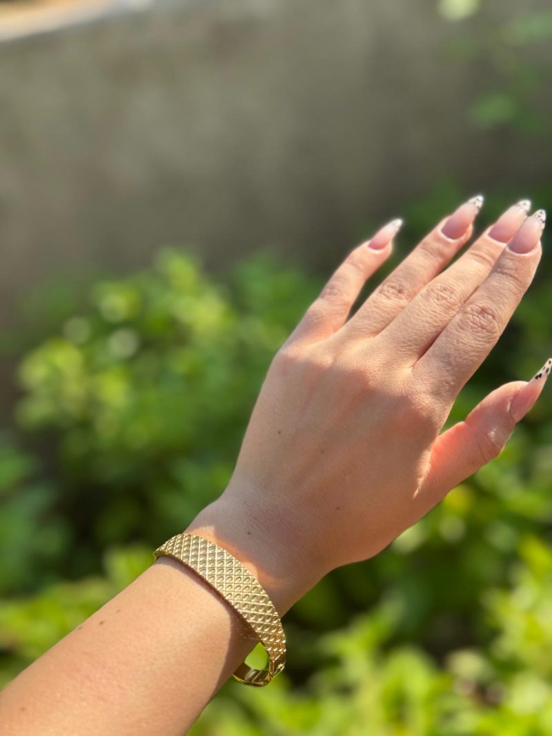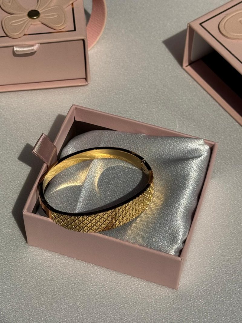 Altın rengin göz alıcı ışıltısı ve geometrik desenli dokusuyla bu paslanmaz çelik kelepçe bileklik, hem klasik hem modern bir görünüm sunar. Tok duruşu sayesinde bilekte kusursuz durur. Parfüm, su ve terlemeye karşı dayanıklıdır, uzun ömürlü kullanıma uygundur. Özel günlerde zarif bir tamamlayıcı, günlük kullanımda ise sofistike bir detay olarak tercih edilebilir.