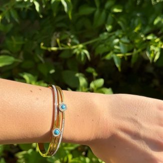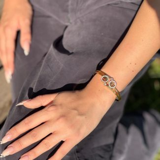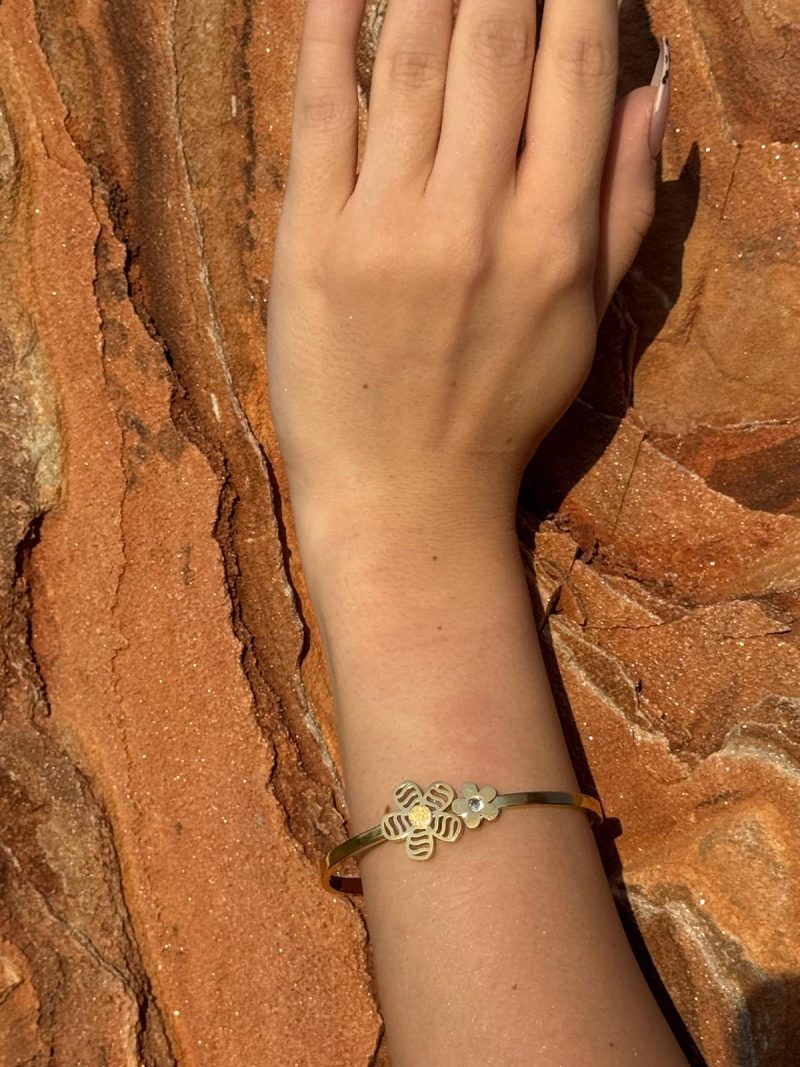 Feminenliğin ve doğanın enerjisini bileğinizde taşımak ister misiniz? Flora Duo bileklik, biri taşlı iki farklı çiçek detayıyla hem minimal hem dikkat çekici bir stil sunar. Işıltısıyla gün boyu şıklığını tamamlar.