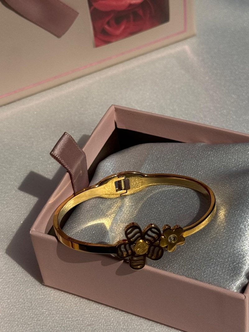 Flora Duo – Çift Çiçek Detaylı Gold Çelik Bileklik
