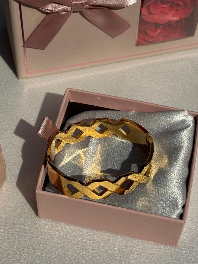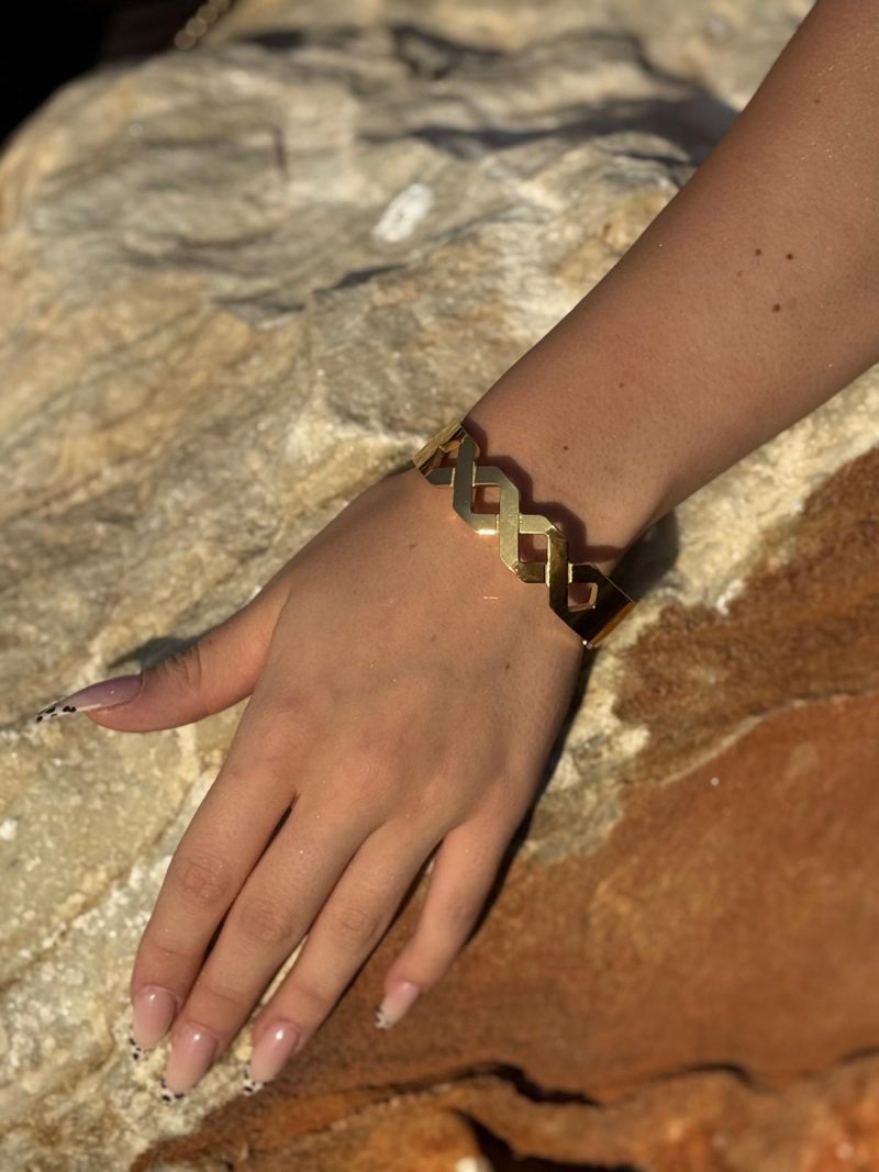 Modern kesimli, geometrik detylı golad bileklik.