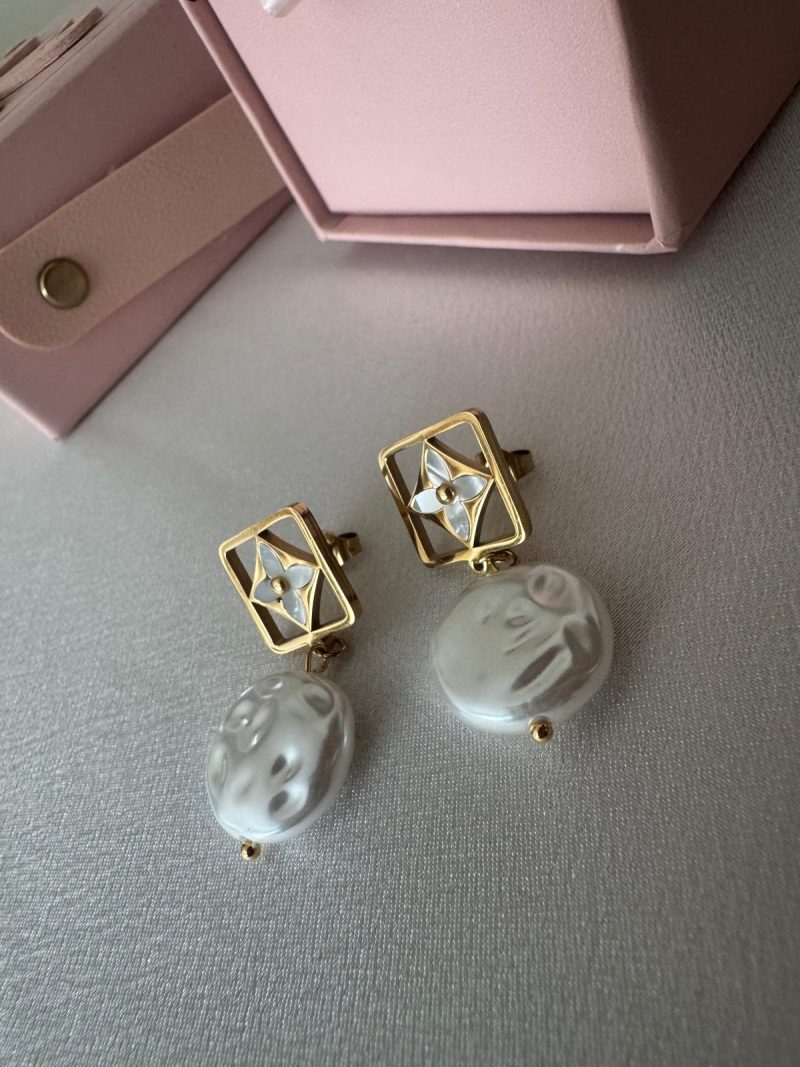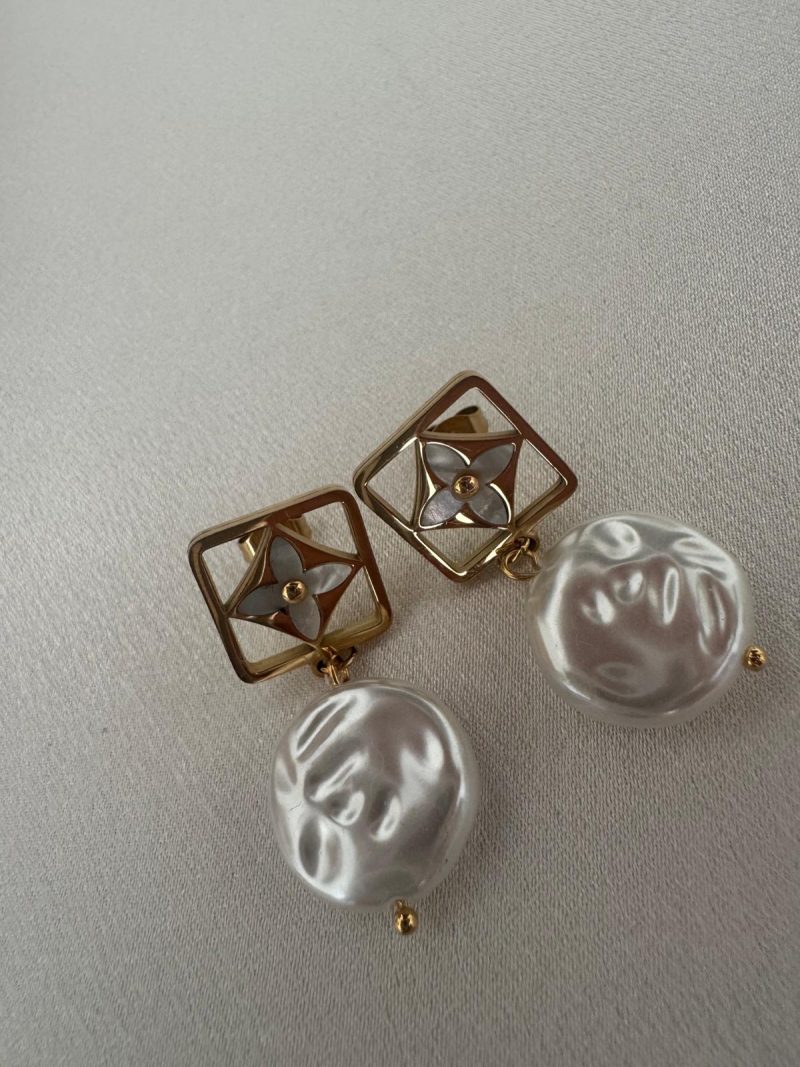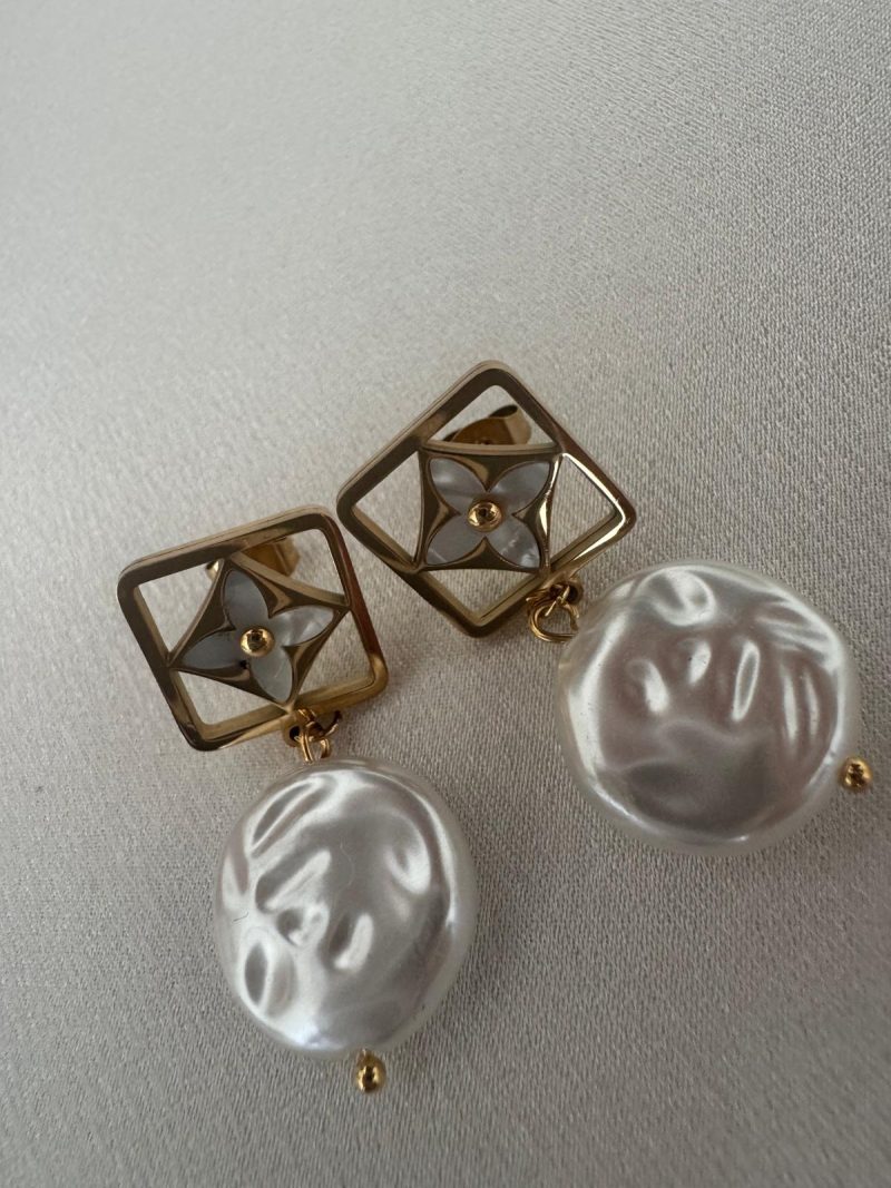 Geometrik Çerçeve ve İnci Detaylı Çelik Küpe