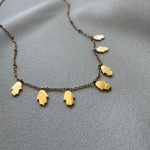 Koruyucu enerjisi ve derin anlamı ile bilinen Hamsa eli, bu özel kolyede modern ve zarif bir tasarımla buluşuyor. İnce zinciri boyunca dizilmiş altın tonlu mini Hamsa figürleriyle tasarlanan bu kolye, hem şık bir aksesuar hem de spiritüel bir semboldür.