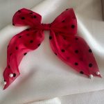 Göz alıcı puantiyeli deseniyle dikkat çeken bu kırmızı fiyonk toka, uç kısımlarındaki zarif inci detaylarıyla romantik bir hava katar. Yumuşak yapısıyla saçı kırmaz, tok duruşuyla da gün boyu konfor sunar. Hem günlük kombinlerde hem de özel günlerde kullanılabilir. Özellikle genç kullanıcılar için enerjik ve eğlenceli bir tamamlayıcı aksesuardır.