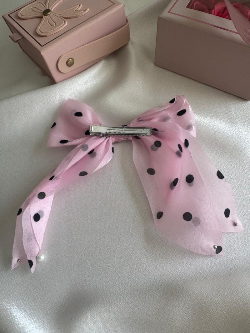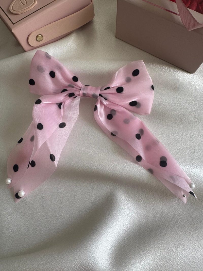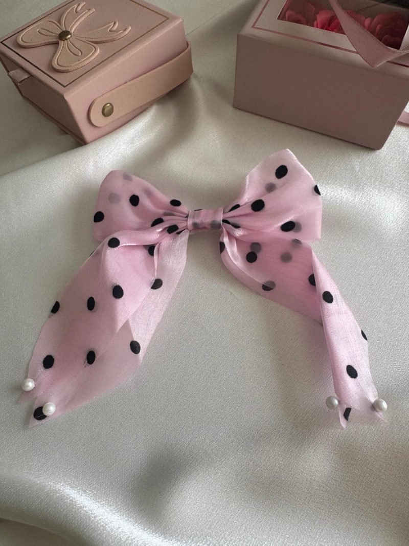 Tatlı pembe tonu, puantiye deseni ve inci süslemeleriyle saçlarınıza romantik bir dokunuş katın.