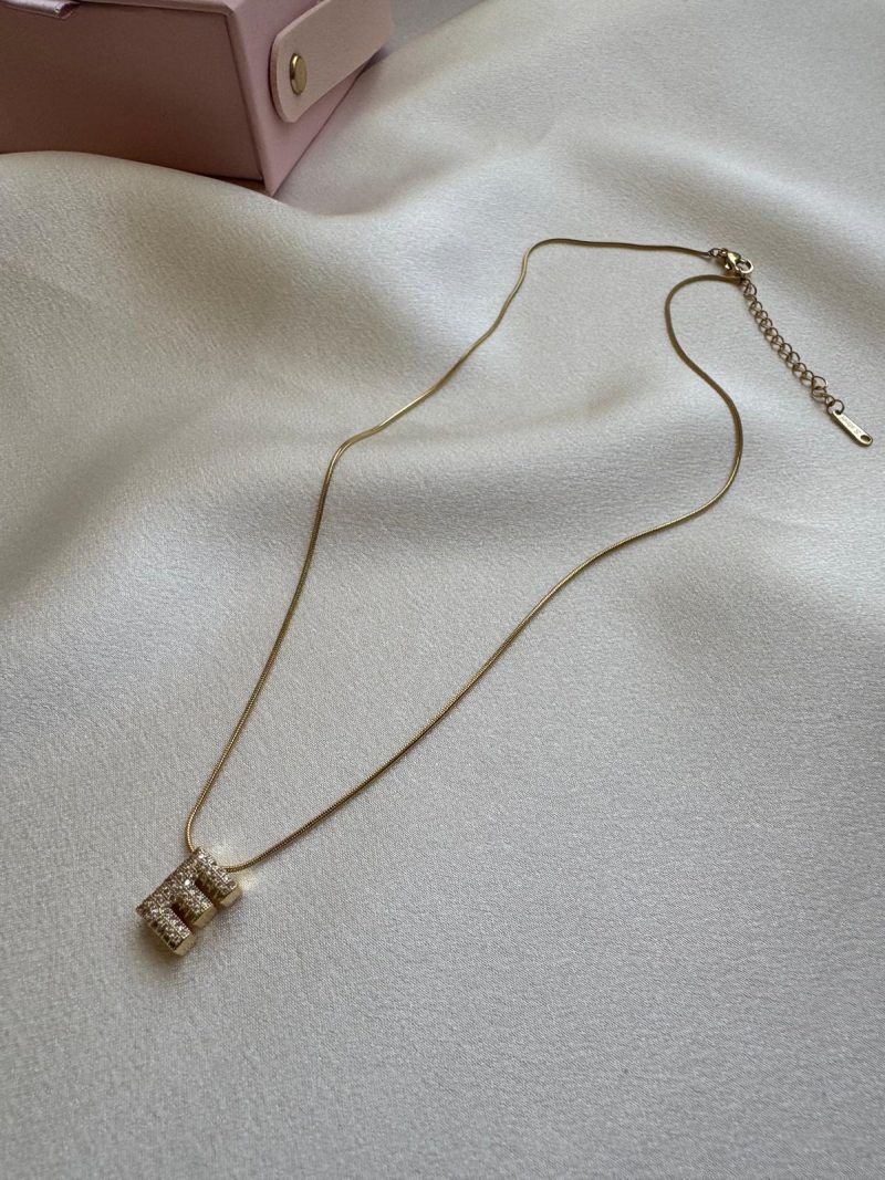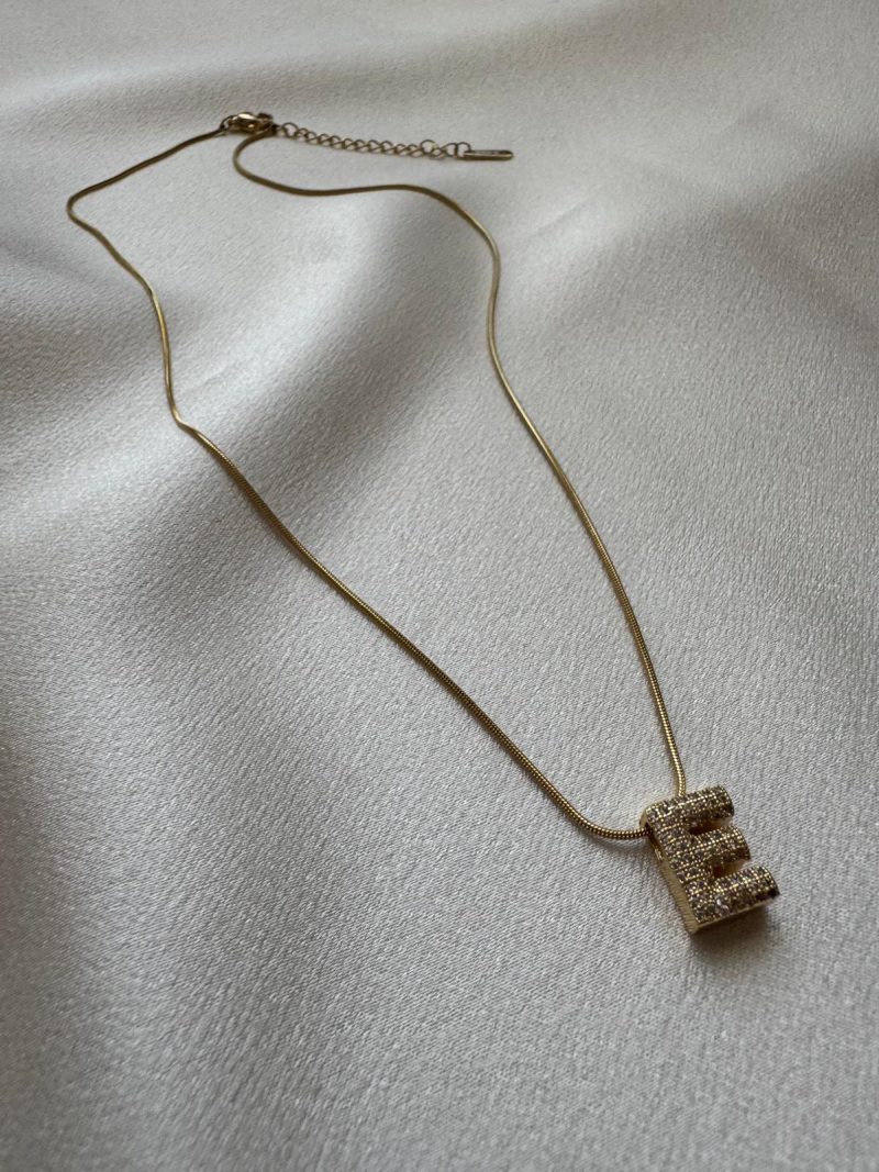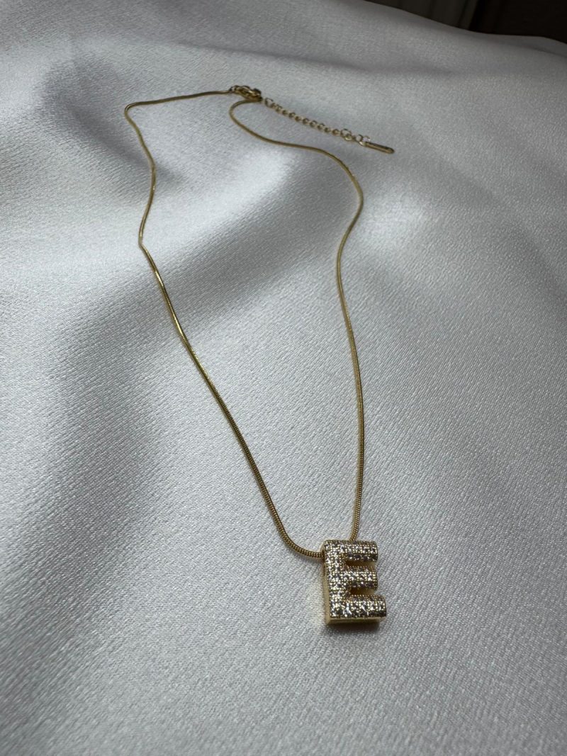 Işıltılı E Harfi Kolye