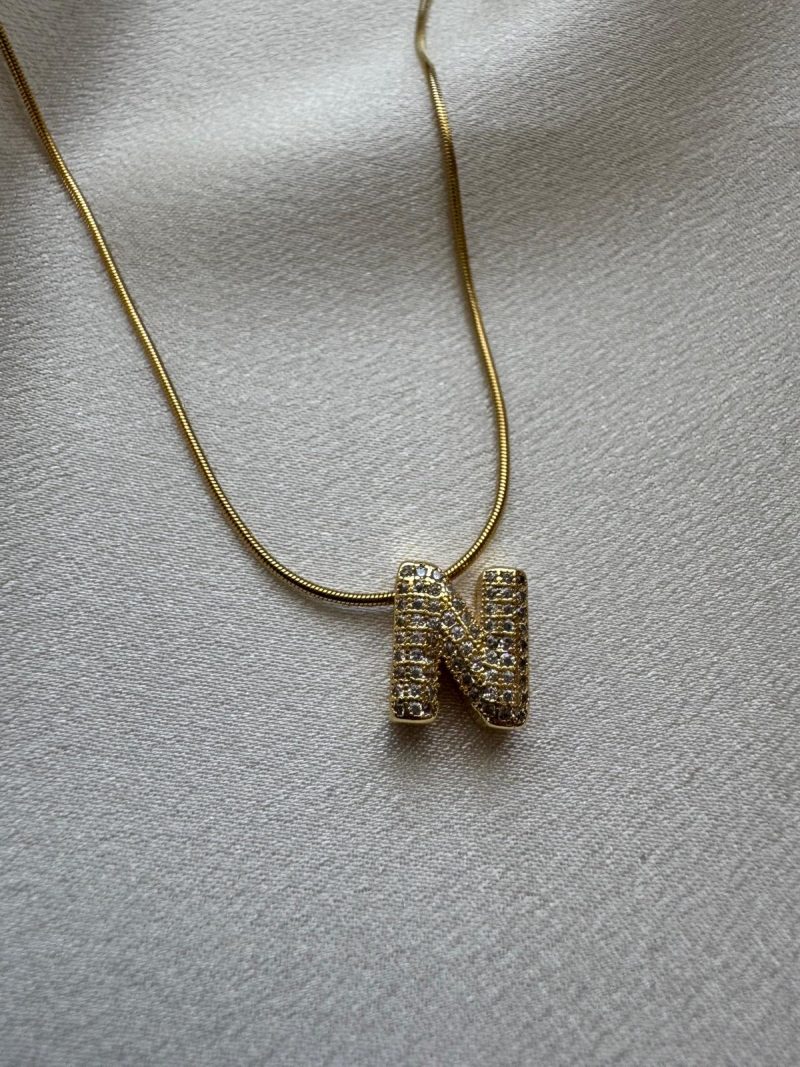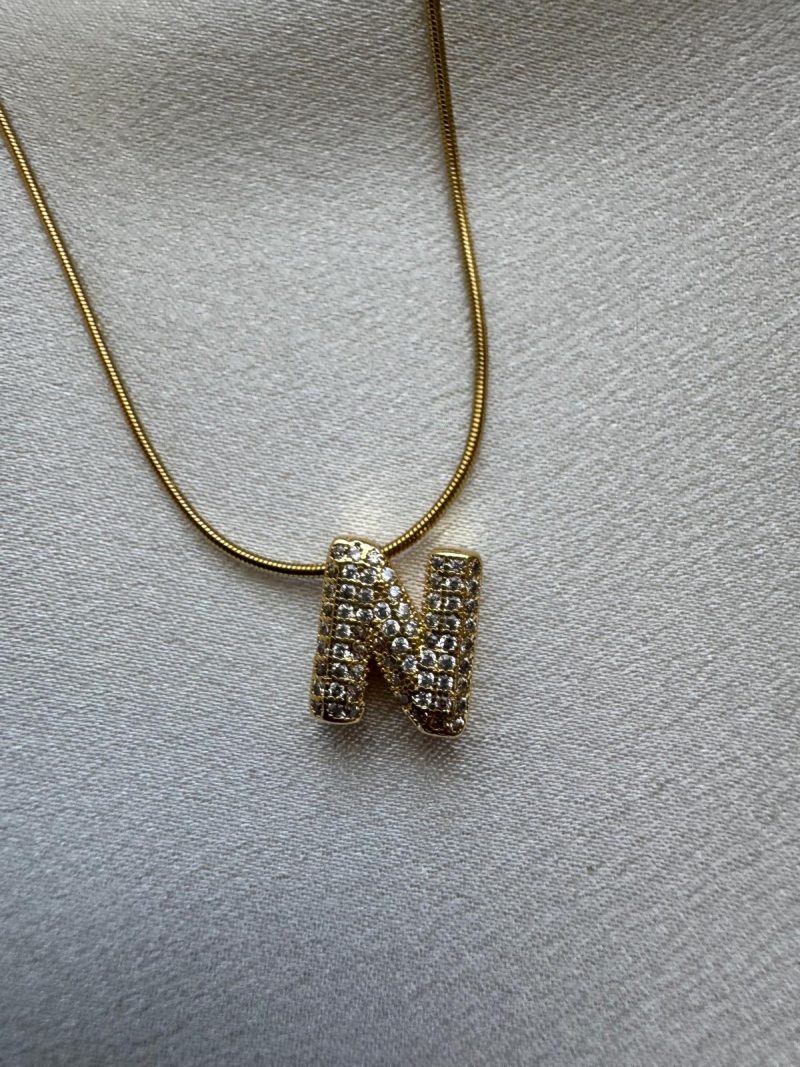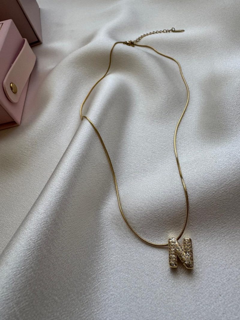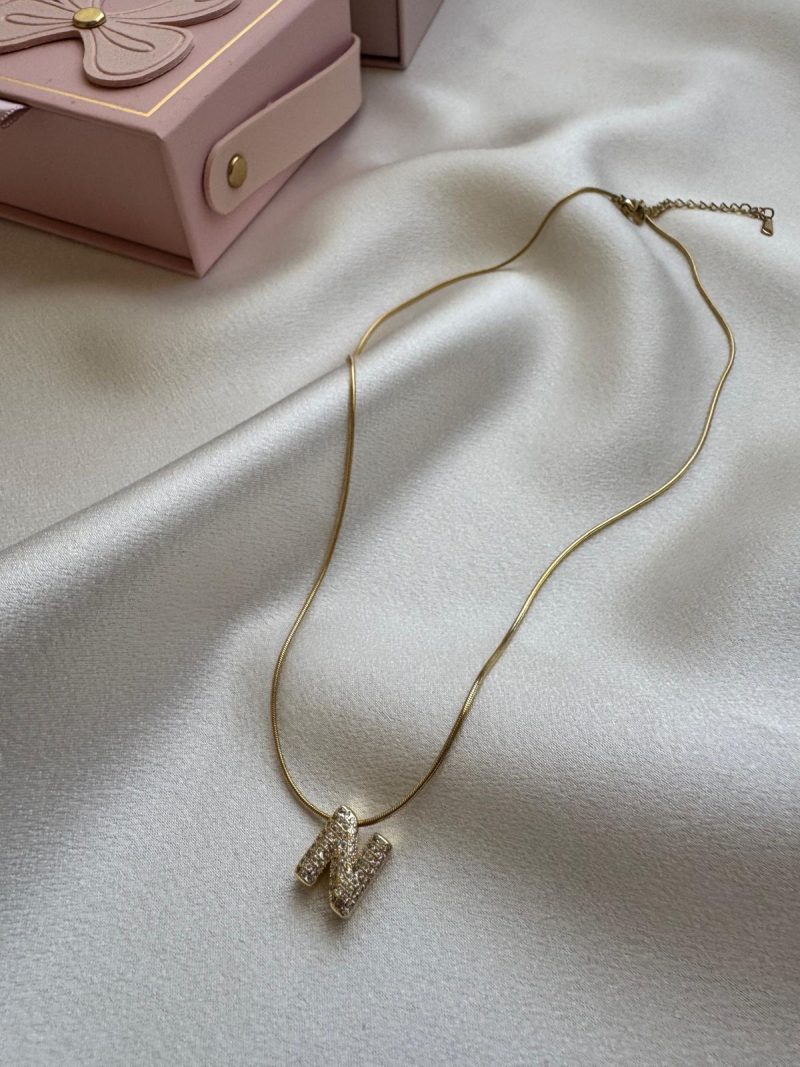 Işıltılı N Harfi Kolye