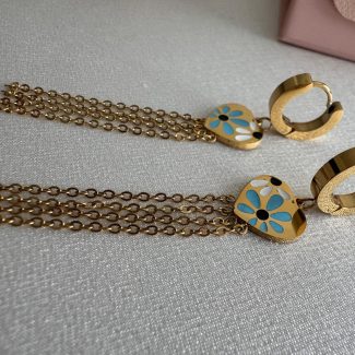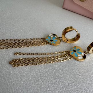 Kare Taşlı Kolye & Küpe Takımı – Altın Kaplama Paslanmaz Çelik