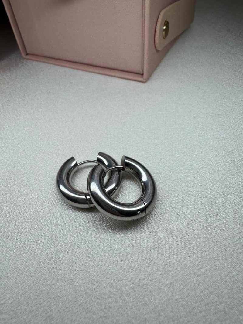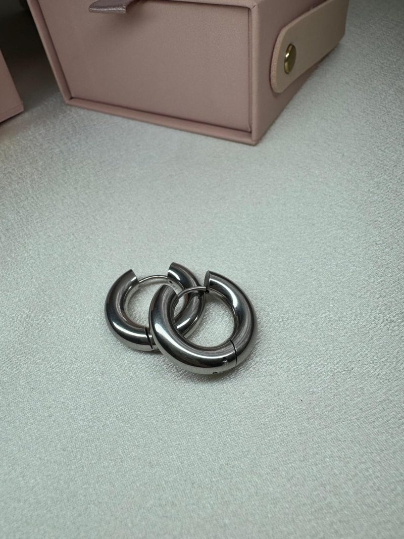 Minimal ve güçlü bir stilin tamamlayıcısı: Kalın formda, paslanmaz çelik halka küpe.