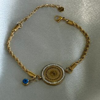 Modern ve minimal tasarımıyla öne çıkan bu bileklik, paslanmaz çelik halat yapısı ve altın kaplama uç detaylarıyla şıklık sunar. Hafif ve rahat yapısı sayesinde günlük kullanıma uygundur. Paslanmaz çelik malzeme, uzun süreli kullanımda kararma yapmaz ve alerji riskini en aza indirir. Hem kadın hem erkek kullanıcılar için unisex bir modeldir.