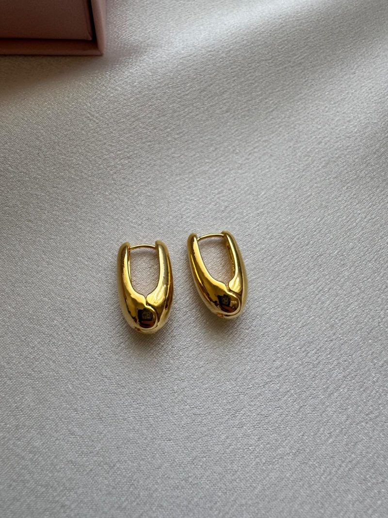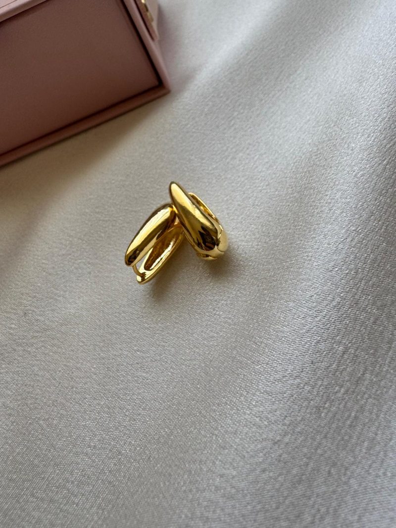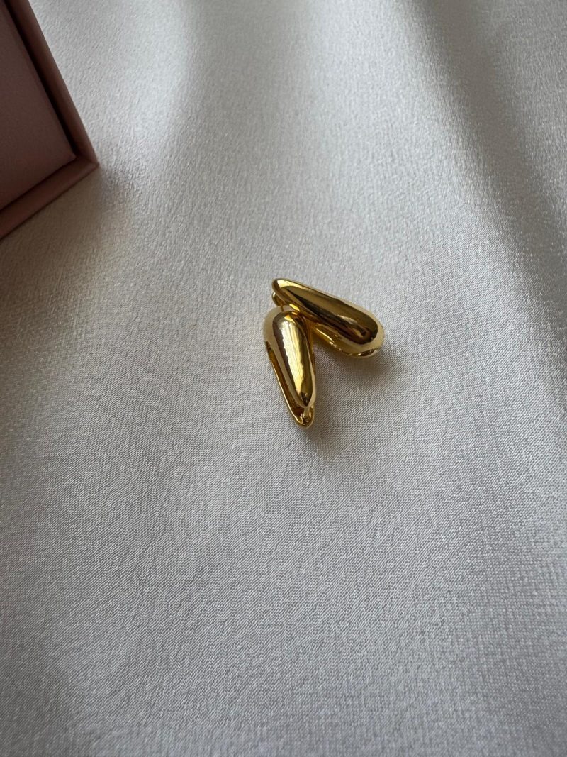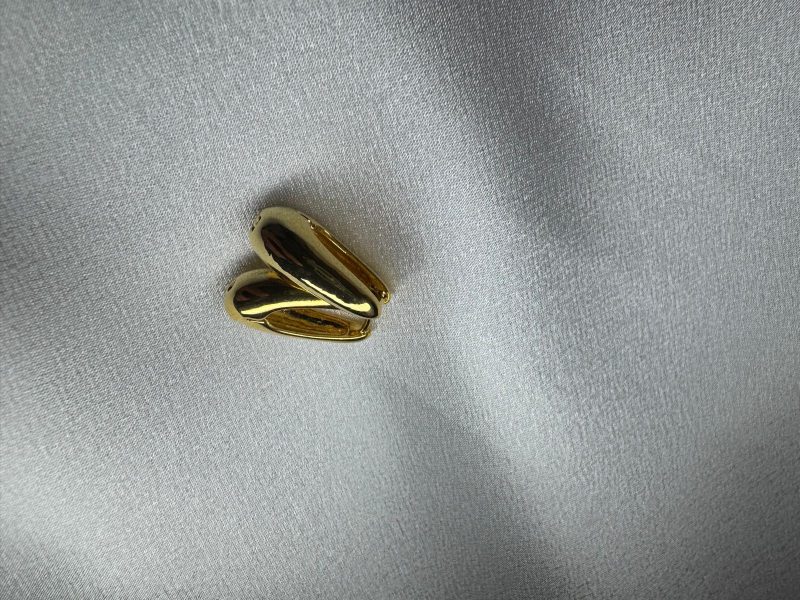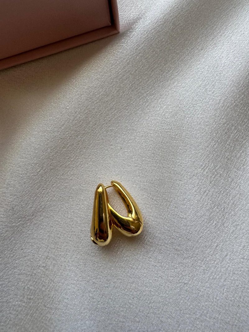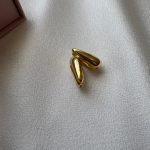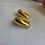 Akışkan hatlara sahip, modern ve dikkat çekici altın renk paslanmaz çelik küpe.