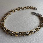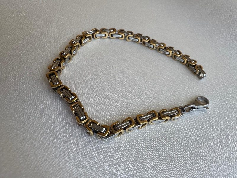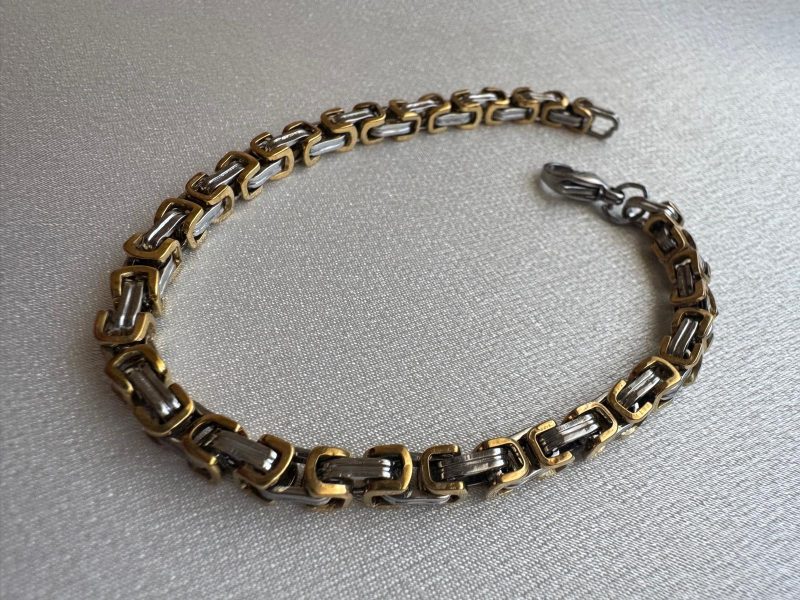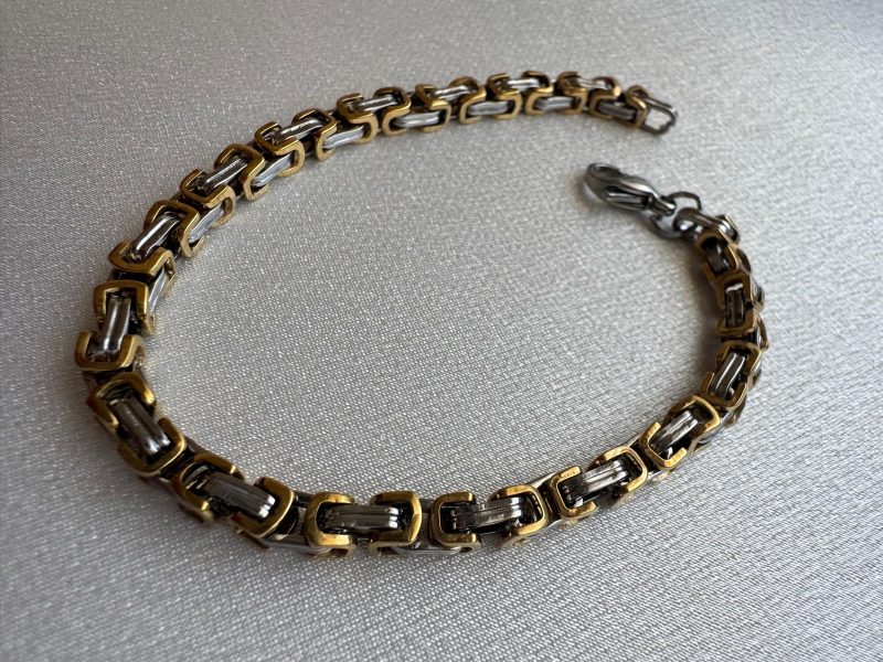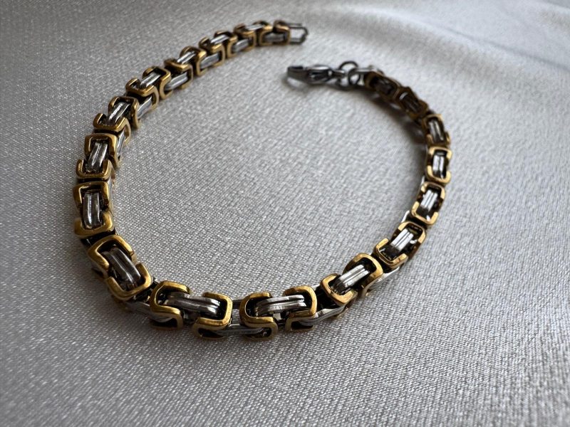 Stilinde gücü ve sağlamlığı simgeleyen bu bileklik, altın ve gri tonların dinamik uyumunu yansıtıyor. Paslanmaz çelikten üretilmiş bu model, hem günlük kullanım hem özel günler için şık ve karizmatik bir tercih. Ağırlığı, sağlamlığı ve parlaklığıyla modern erkeklerin tarzına katkı sağlar. Hediye alternatifi olarak da oldukça dikkat çekici bir üründür.