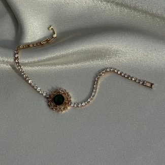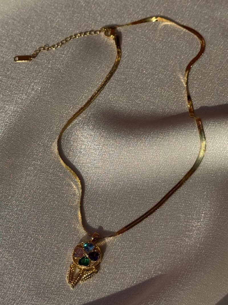 Altın kaplama, paslanmaz çelik ve renkli taşlarla tasarlanmış zarif çiçek motifli kolye.