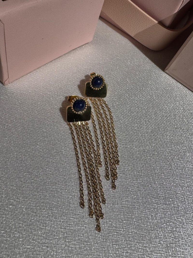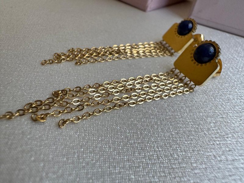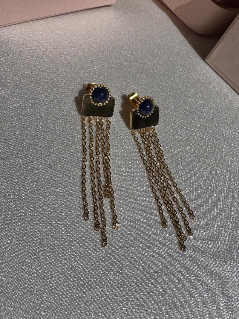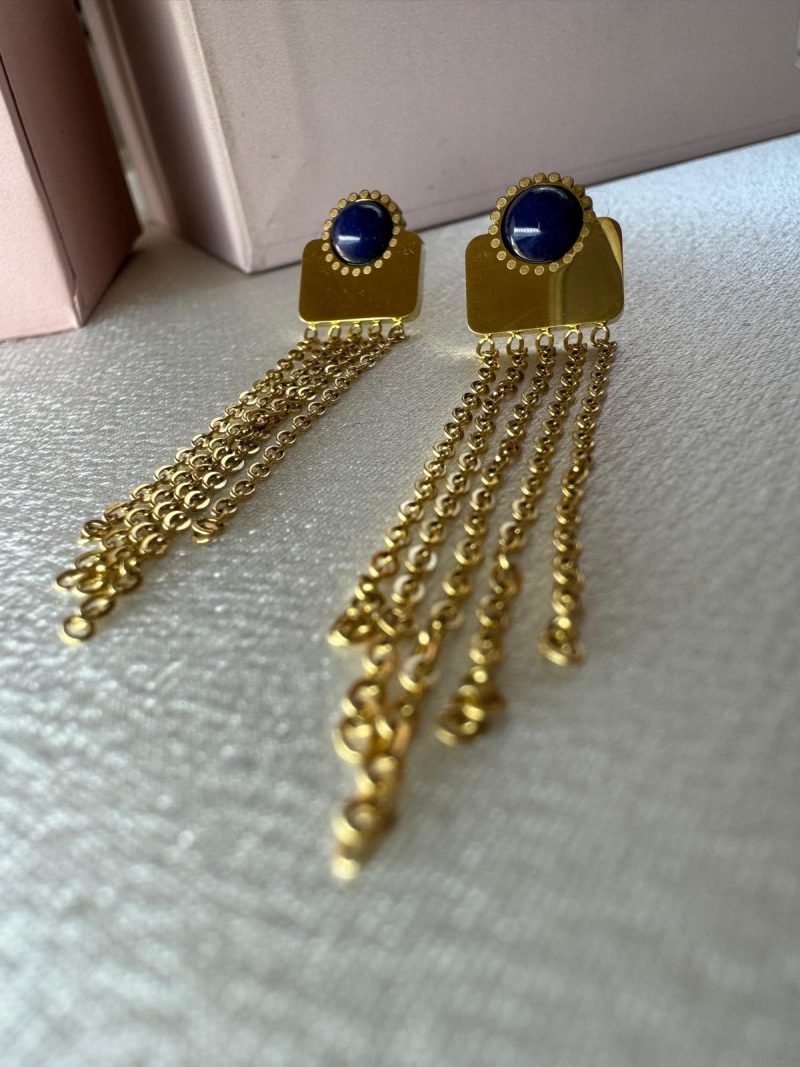 Sarkıt Zincirli Mavi Taş Küpe – Paslanmaz Çelik