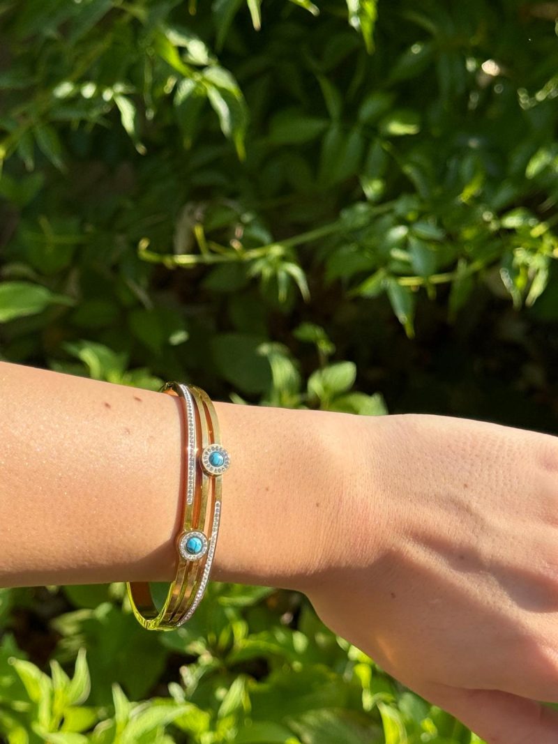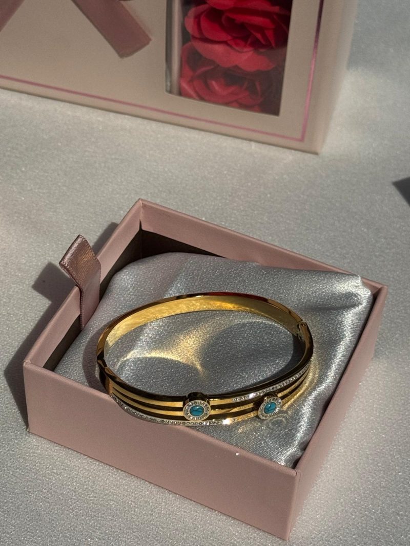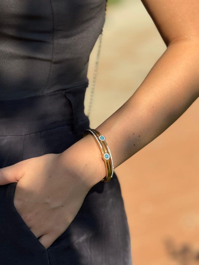 Sky Touch – Turkuaz Işıltılı Gold Bileklik