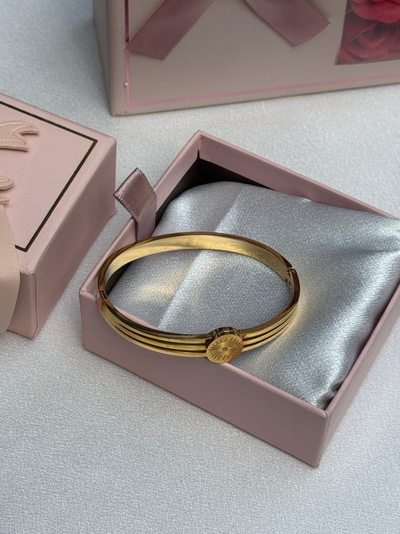 Üçüncü Göz Motifli Çelik Kelepçe Bileklik – Altın Renk